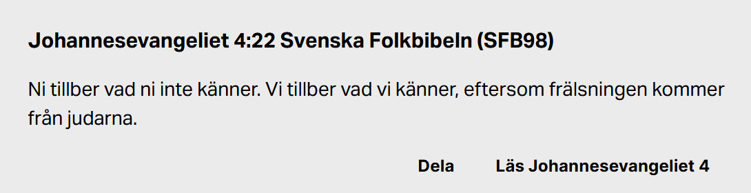 Det är viktigt för oss alla att förstå att Jesus specifikt identifierar sig med judarna, och att denna identifiering inte upphörde med hans jordiska liv, utan fortsätter i Skriften efter hans död, begravning och uppståndelse – och vidare in i evigheten. Lika viktigt är det att förstå vad Jesus sa till den samariska kvinnan: ”Frälsningen kommer från judarna.” Detta är alltså ett obestridligt historiskt faktum. Utan judarna skulle vi inte ha några patriarker, inga profeter, inga apostlar, ingen Bibel och ingen Frälsare. Utan allt detta, hur mycket frälsning skulle vi då ha? Ingen alls!