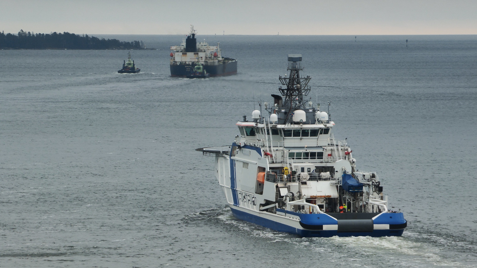 Eagle S har samma morgon lämnat hamnstaden Ust-Luga i Ryssland. Den finska kustbevakningen möter upp fartyget ute på internationellt vatten, och eskorterar det till finskt territorialvatten.