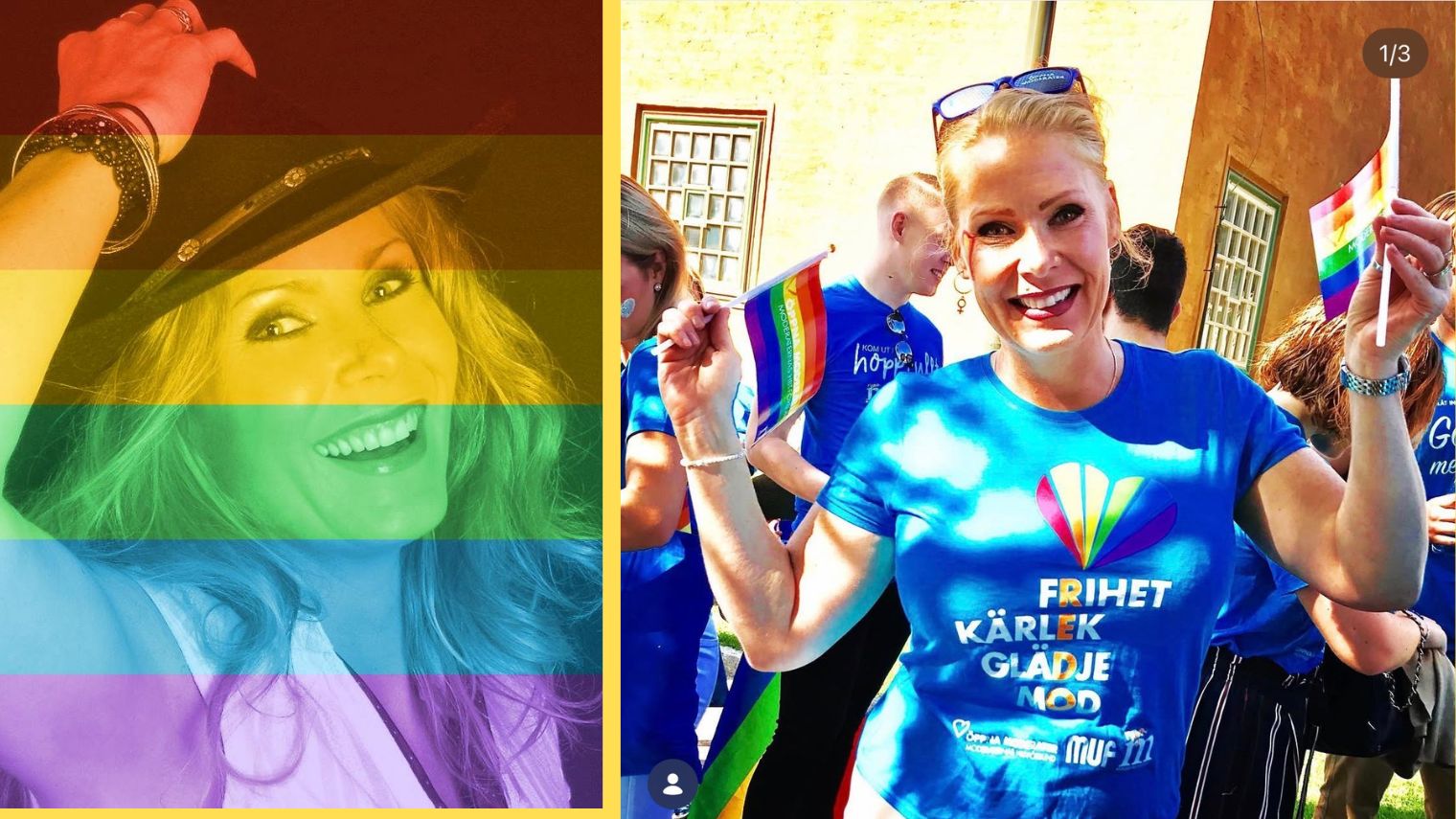 I ett inlägg på sociala medier skriver SD:s nya toppkandidat i höstens riksdagsval att hon längtar efter ett ”fördomsfritt samhälle” och använder hashtaggen ”#loveparade” med en Pride-flagga i handen.