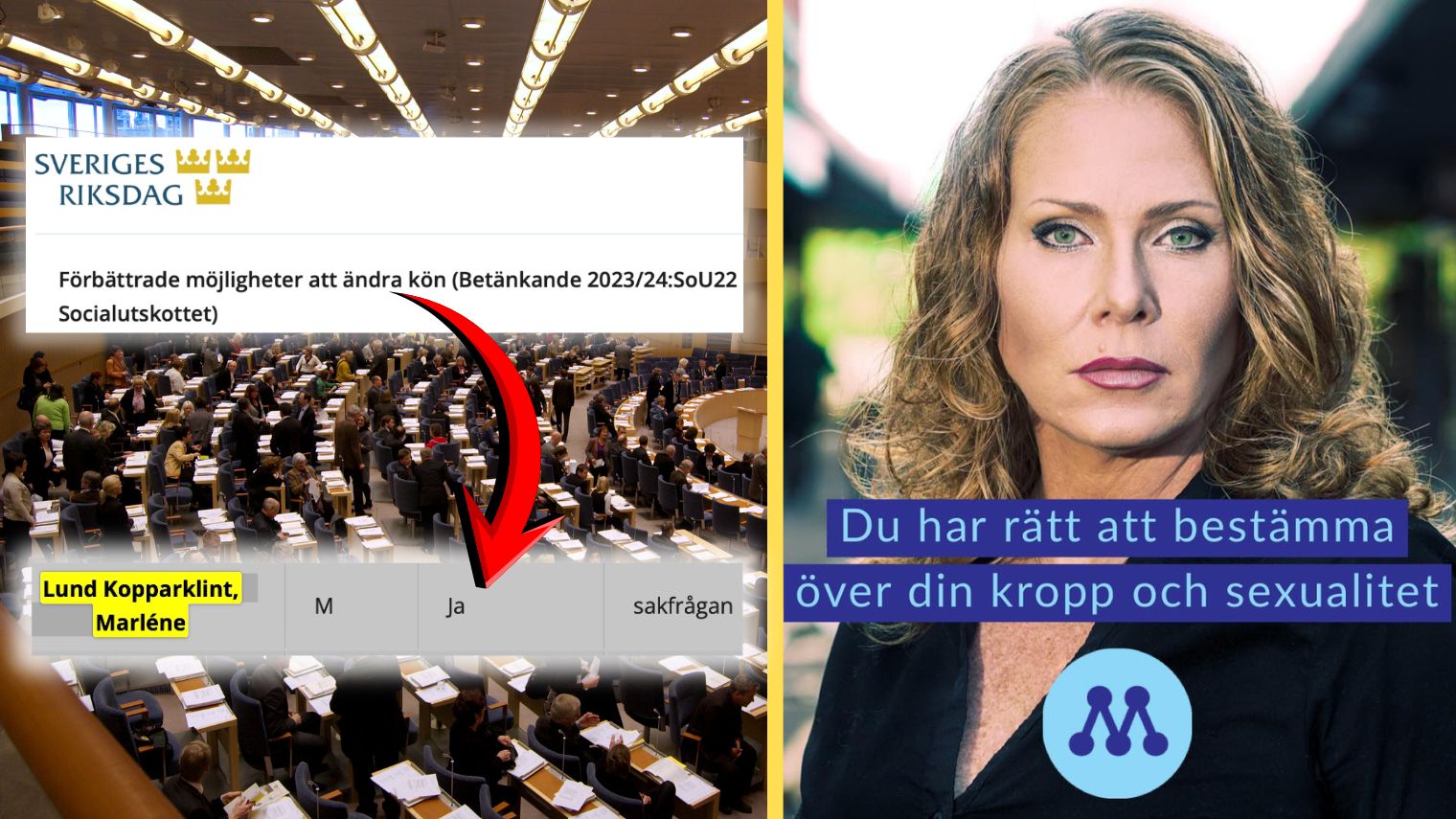 Marléne Lund Kopparklint delade inga personliga berättelser likt Arin Karapet, kommenterade inte sin ja-röst i frågan om könsbyteslagen trots att den diskuterades i studion och betonade istället att partibytet inte handlade om att hon har ändrat värderingar, utan om att SD nu erbjuder “en större plattform” för henne.