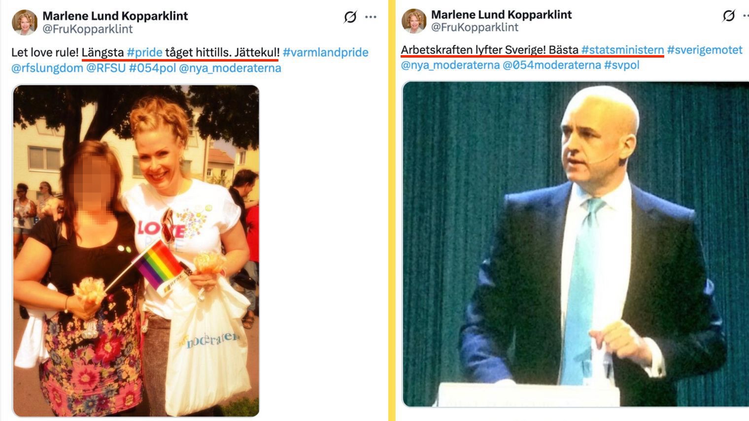 Marléne Lund Kopparklint har varit starkt kritisk mot medborgare som uttryckt ogillande mot Pride-rörelsen. Hon har tidigare reagerat kraftigt på att representanter från SD Värmland har varit kritiska mot Pride-jippon, något hon menar “kränker” människor. I ytterligare inlägg lyfter hon vikten av att fördjupa kunskapen om diskriminering för att skapa ett mer jämlikt och fördomsfritt samhälle.
